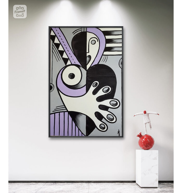 Nella stessa anima convivono 2 entità distinte: una capace di amare, l’altra disposta ad odiare; una dolce e gentile, l’altra rabbiosa e violenta. Quale di queste due entità prenderà il sopravvento? In realtà devo confessare che anch’io sono una persona bipolare, con un grosso problema di capacità di gestire la rabbia; ho dovuto lavorare su me stesso per anni e la pittura mi ha aiutato molto a sublimare la violenza, adesso sono poco più che un vecchio brontolone anche se ogni tanto fatico ancora a controllarmi, infatti alterno periodi di creatività e produzione estrema a momenti di inattività e “depressione artistica”, come la chiamo io. Essendo stato io stesso vittima di una persona bipolare e narcisista, questo argomento mi sta particolarmente a cuore. “Amore bipolare” è un’opera difficile, ma sono sicuro che troverà una giusta collocazione. Tela di 80 x 120 cm, tattoo ink ed acrilici.