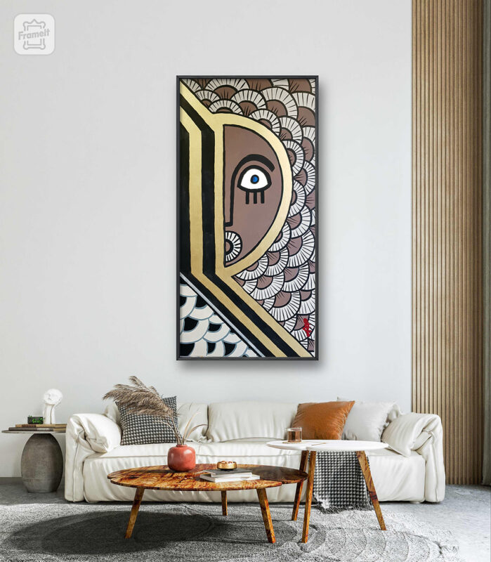 Il quadro si sviluppa in altezza, creando così un’opera che può stare bene in una parete anche di medio-piccole dimensioni.