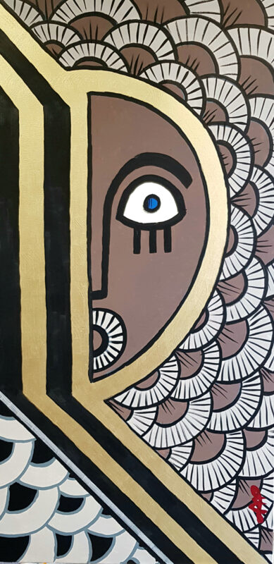 “cinnamon girl” è un pezzo d’arte che si ispira alle figure dell’arte africana, così tribale, antica e vibrante, essenziale.