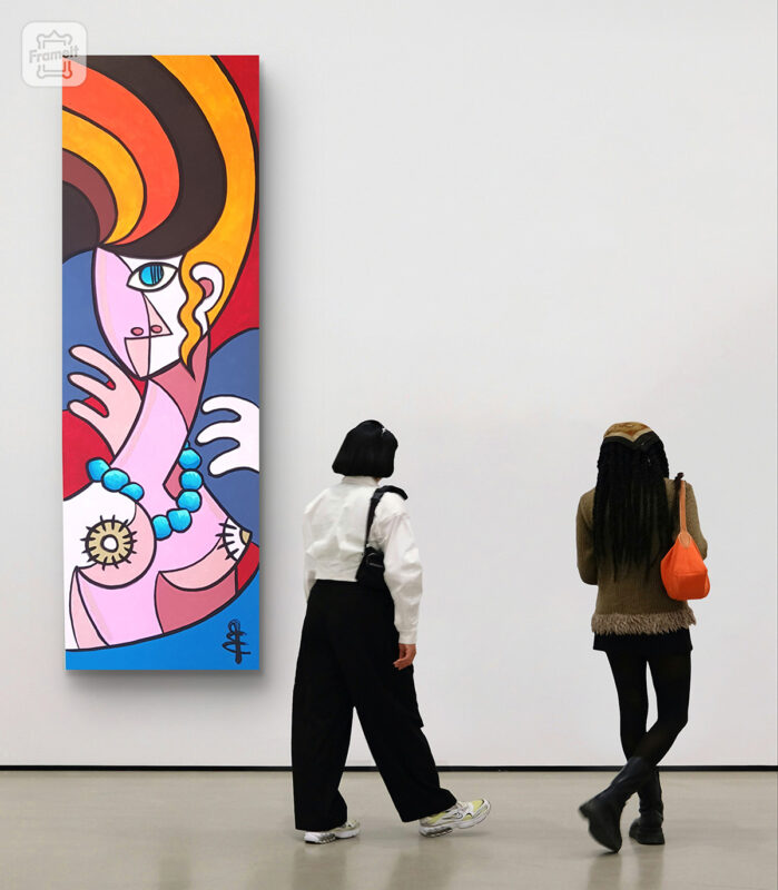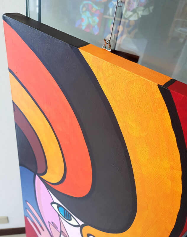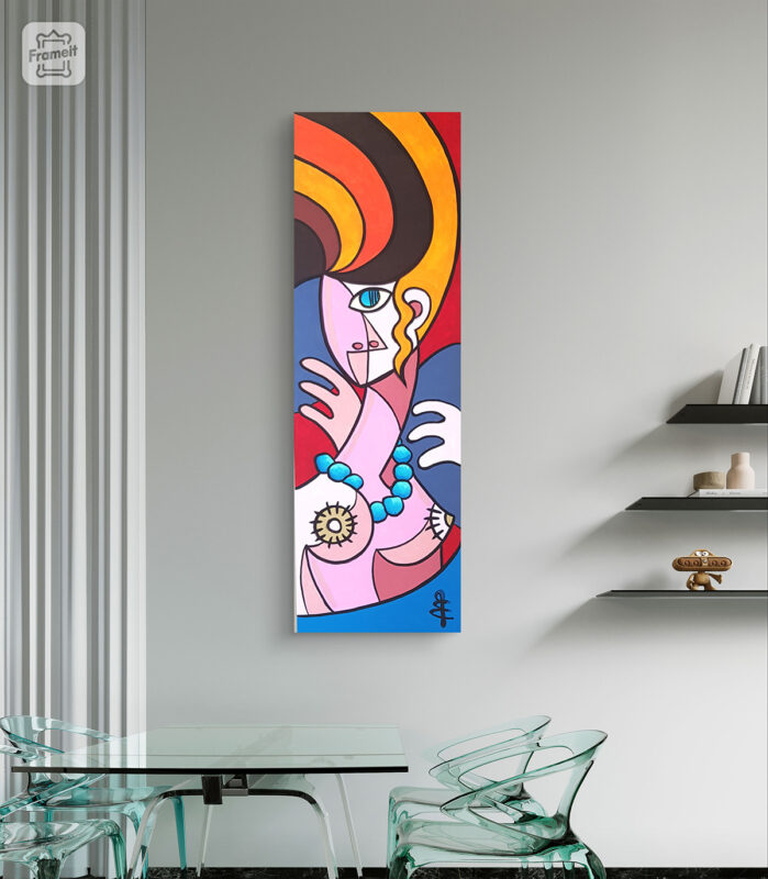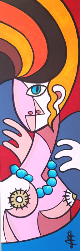 Quando dipingo, parto dalle sensazioni ed arrivo all’opera stessa. Come nel caso di “Donna con collana”,spesso è il supporto a parlare, con una visione proiettata su di esso, che mi suggerisce i tratti principali. Non posso dire però di entrare in una sorta di trance, anzi mi diverto dipingendo ad interagire con ciò che mi circonda.