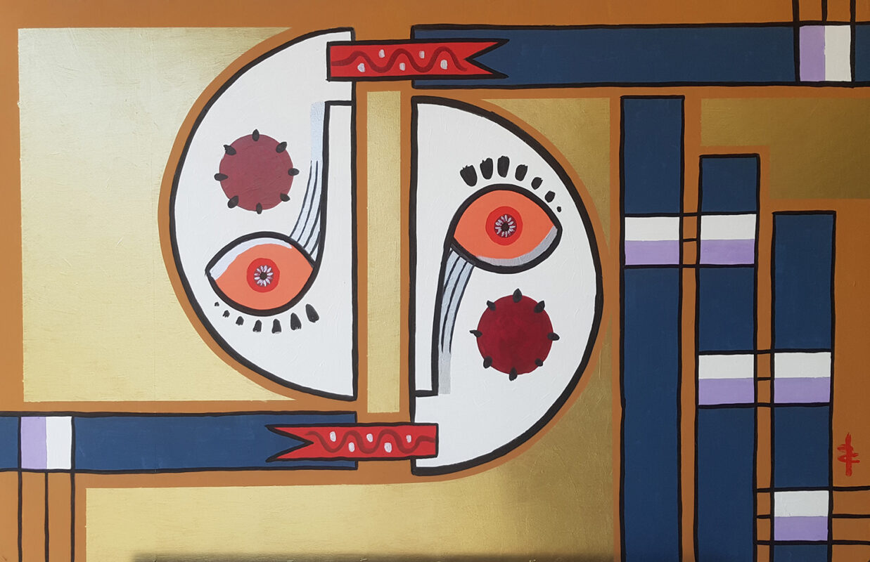 “Lingue Biforcute” è un’opera di medio-grandi dimensioni, che simboleggia la doppiezza e la menzogna. grafica incisiva e importante grazie agli inserti oro.
